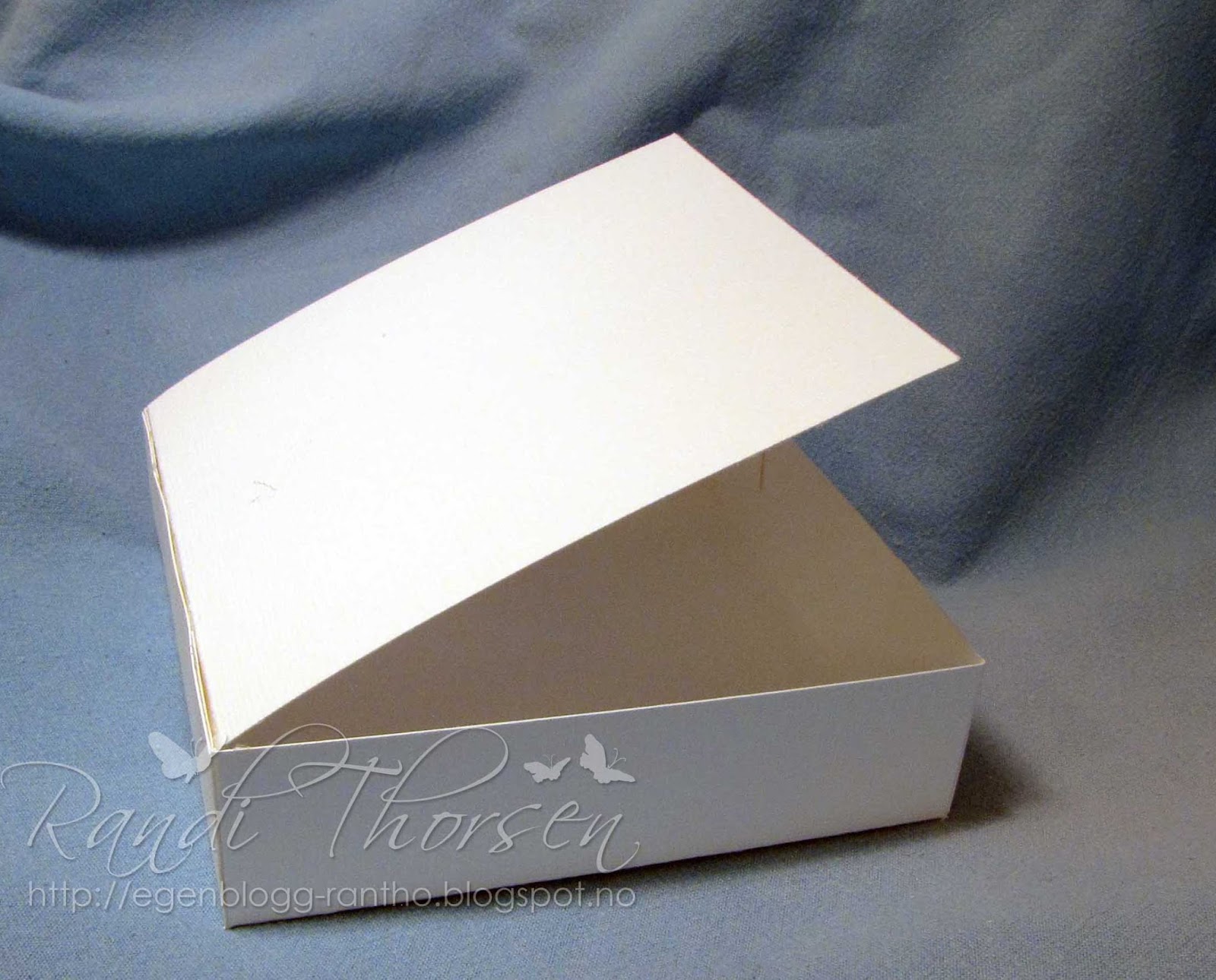 Skjær ut et kvadrat i kartong på 18 x 18 cm og lag brettekant 3 cm inn på hver side.